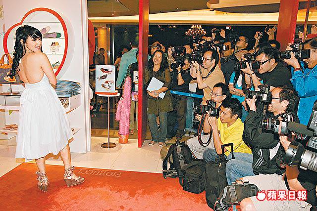 官恩娜(Ella)昨日穿上性感春裝示範新款涼鞋及手袋,除了吸引眾多傳媒採訪,還惹來眾多醉翁之意不在酒的攝影發燒友迫爆店舖影靚相。Ella指專程到來的拍友雖然各懷目的,但有些純粹為影靚相而來,而且她做足防走光措施,不怕成為性幻想對象。