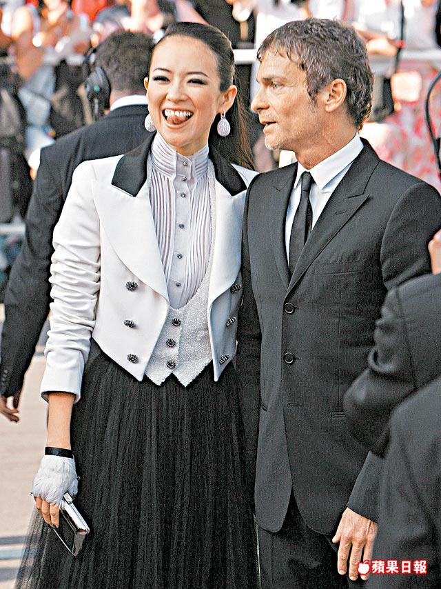 現年28歲晉身荷李活女星行列的內地影星章子怡,自跟41歲美國時代華納的最大個人股東ViviNevo拍拖後,身價再度提升,她跟男友ViVi以特別嘉賓身份出席該片首映禮,身穿黑白晚裝的子怡跟男友先十指緊扣結伴下車,踏上紅地毯前更旁若無人當眾咀嘴,大晒恩愛,咀完後,子怡還做出伸脷的鬼馬表情。