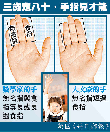 手指長度反映兒童天份