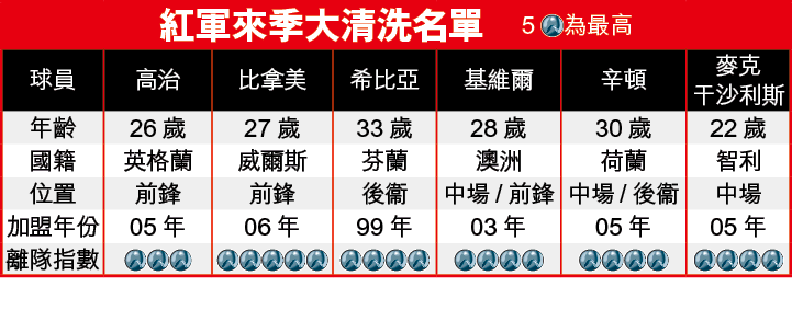 32隊參賽,只有1隊勝利者;當了「失敗者」的紅軍,自然會求變圖強。歐聯決賽前已宣佈大換班的利物浦,大清洗的消息賽後更甚囂塵上,領隊賓尼廸斯揚言:「準備好支票買人。」