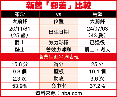 縱然布沙口中不斷地否認,但他與馬龍不論是外形、打法,以至得分能力都十分相近,難怪外間給布沙冠以新「郵差」的綽號。