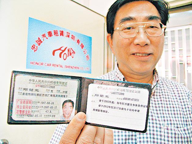 港人經營的忠誠汽車租賃(深圳)有限公司,是深圳首家外商經營的租車公司。公司董事總經理彭先生表示,現時港人只須有香港車牌就可免考試申請內地牌。越來越多港人申領了內地駕駛執照,預計港人到內地自駕遊將成風氣。