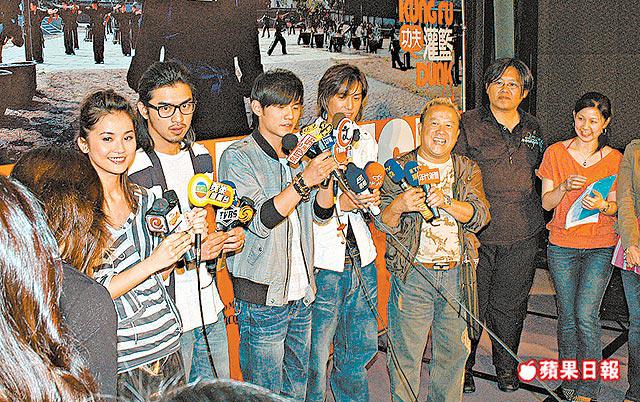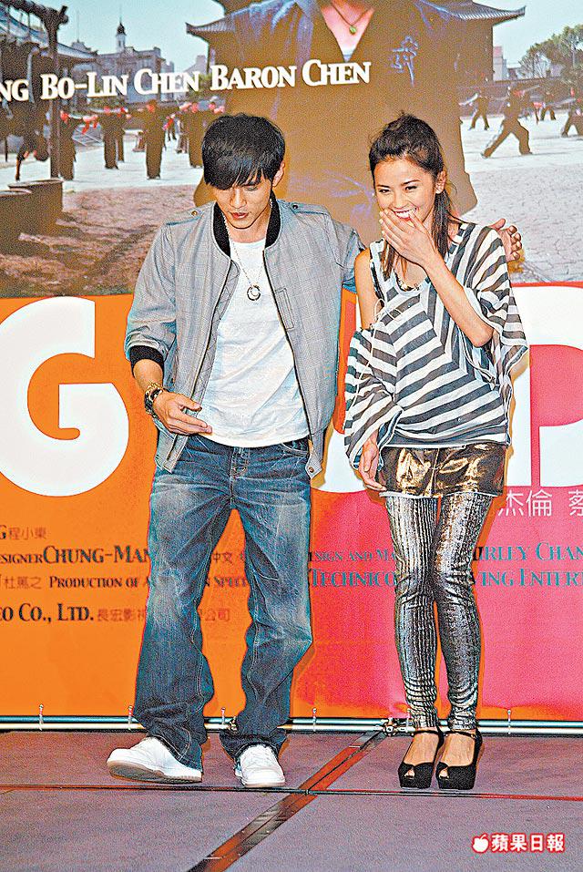 周杰倫、蔡卓妍(阿Sa)、陳柏霖及曾志偉等演員,昨日在台灣出席電影《灌籃》記者會,而他們在片中一直保密的角色造型,也在記者會上曝光。現場傳媒要求兩位男女主角阿Sa及周杰倫合照,但周杰倫即時害羞起來,只肯和阿Sa並肩而立,最後要記者多番要求,他才肯伸出手放在阿Sa的肩膊上拍照,氣氛尷尬。