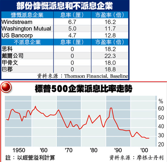 賺大錢也不派股息的大有人在,思科系統、戴爾、蘋果公司、甲骨文、Amgen,以及股神畢菲特的投資旗艦巴郡等,便沒有向股東派息。