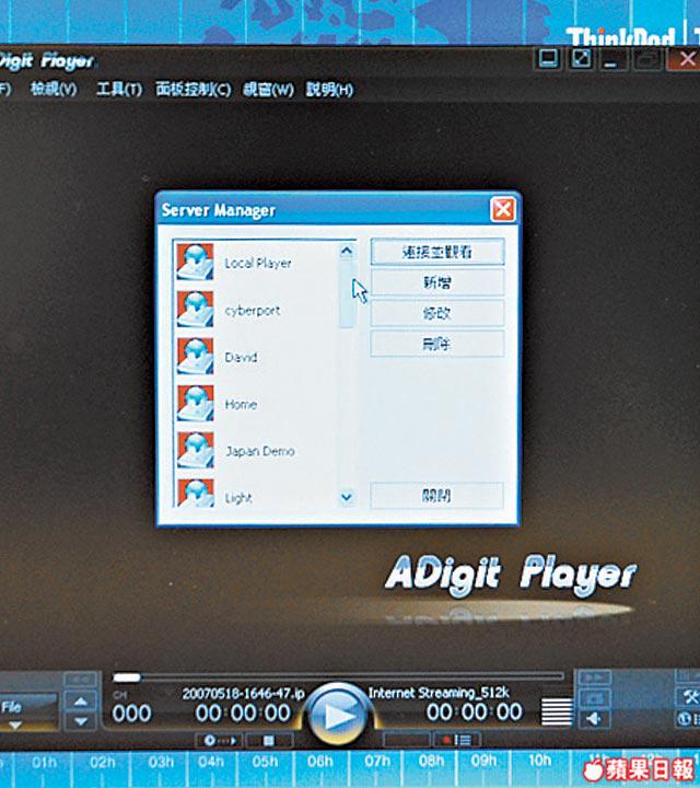 安裝程序都好簡單,先將所有TVIn、Out線駁晒落gogomediaPro,跟手將隨機附送《ADigitPlayer》軟件,裝入屋企電腦內將之Set為Server;自此你只須長開該軟件同上住網,你就可以玩「上網睇屋企電視」;心水清嘅朋友一定想知可否轉台,例如屋企睇TVB,公司就睇NOW財經台?一樣得!因為gogomedia內置有TVTuner,可作自身調頻之餘,又唔會影響家中人所睇之電視節目。