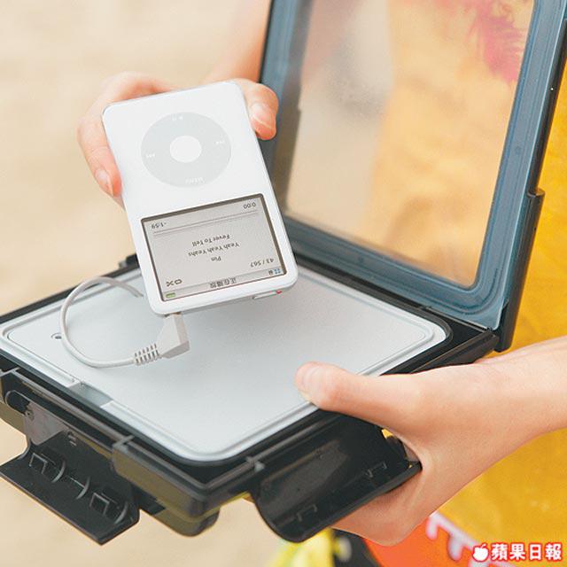 不少人到沙灘只求曬得一身古銅色,一個人躺着,有歌聽吓最爽,曬太陽都特別Relax。所以防水音響用品絕不少得。男仔喜歡瀟灑有型,太陽眼鏡連MP3機就最適合;女仔喜歡邊聽歌聽講吓心事,防水iPod喇叭最啱使。