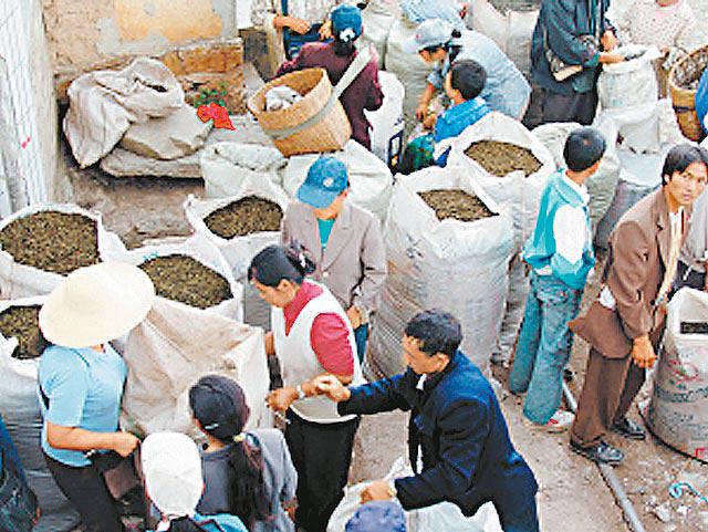 「收茶的人是用麻袋裝着現金,睡在茶農家裏,搶收春芽的。」由於普洱茶瘋狂漲價,今年4月收春茶季節,引發全國各地的茶商蜂擁到雲南爭搶茶菁(做茶的原料),令茶菁價錢亦比去年升價三至五倍。