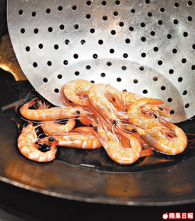 材料:新鮮蝦仁3両、芥蘭、芽菜、粗麵1碗