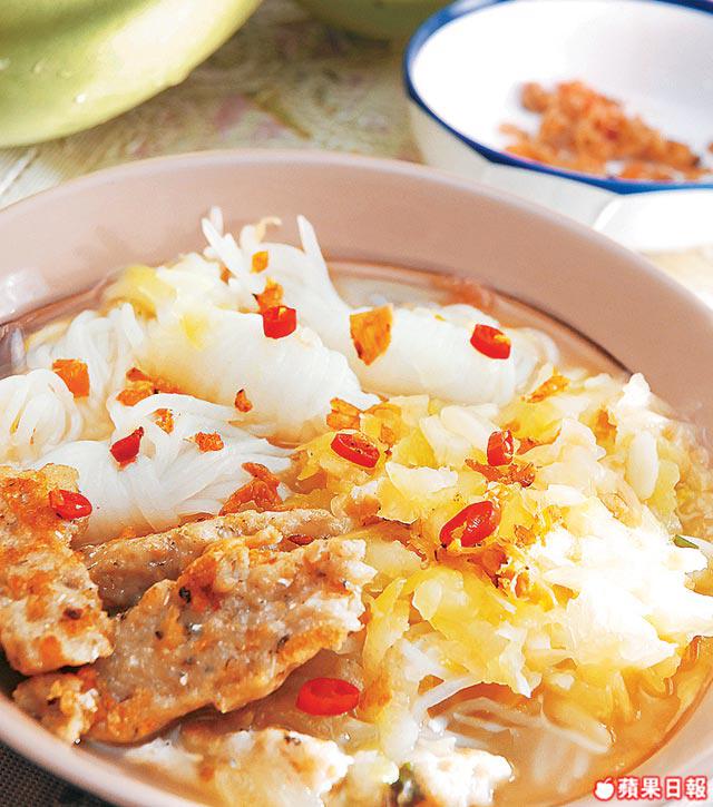 材料:葫蘆瓜1/2斤、鯪魚肉4両、冬菜/蝦米/葱花各1湯匙、芋絲1盒、清雞湯2碗、冬菜1湯匙(放湯用)、鹽適量