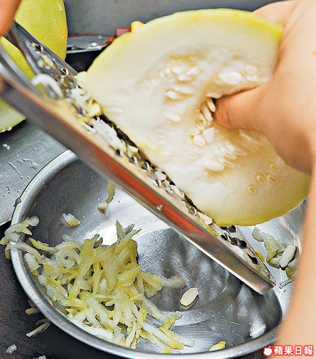 1.葫蘆瓜削皮,刨絲備用。