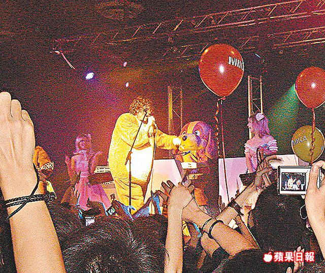 首次來港宣傳的英國男歌手MIKA,前晚在九龍灣國際展貿中心舉行免費迷你個唱,場內場外猶如個唱名稱「MIKA音樂嘉年華派對」一樣,充滿熱鬧氣氛,又大派珍寶珠、棉花糖、爆穀、飲料、氣球和紀念品,讓超過1,500名fans及容祖兒、何韻詩等本地藝人過一個開心派對。
