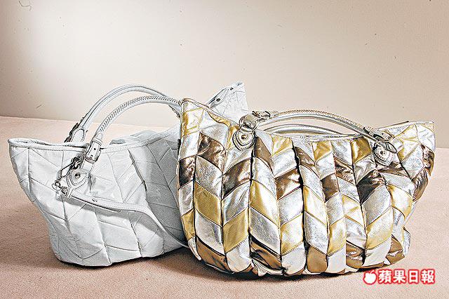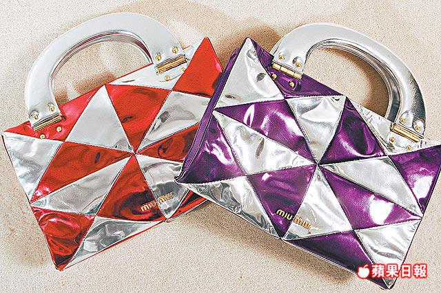 此外,也有從collection上的長方形、菱形圖案作輪廓的手袋,配以metallic的金和銀色漆皮,酒紅色及紫色圖案,將未來科幻及retrocharm共冶一爐。