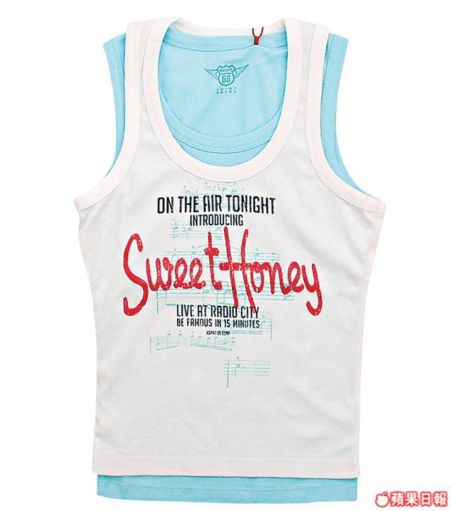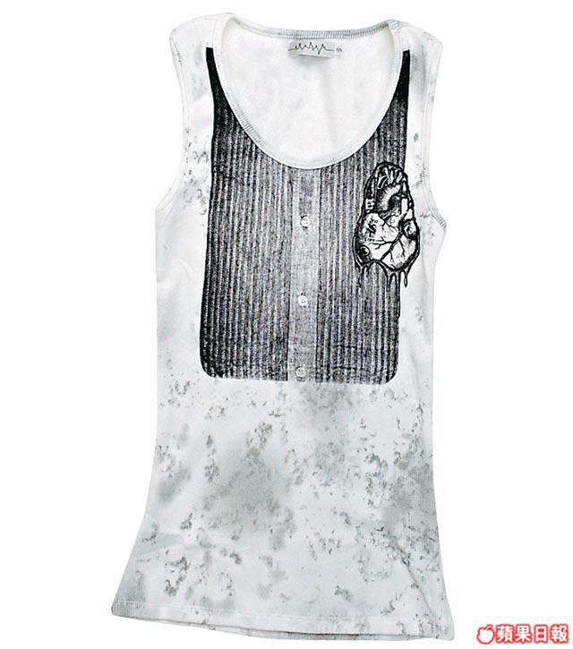 ■Ground-Zero米白×灰恤衫FakePrint圖案背心$398(b)