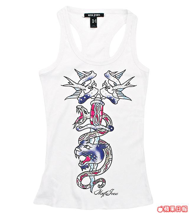 ■MNG白×粉紅鳥兒圖案背心$229(h)