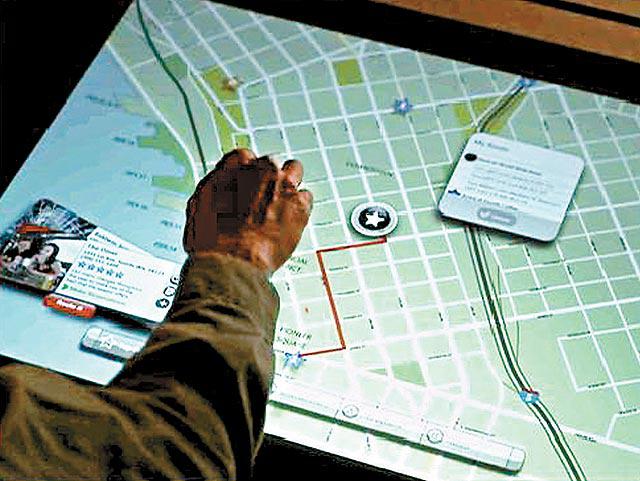 平面電腦一個娛樂玩意是玩影像砌圖,平面電腦將影像投射在幾塊玻璃片的同時,也將正確位置用紅外線投射到玻璃片上,不管你怎樣砌,電腦都會知道你砌得對不對。