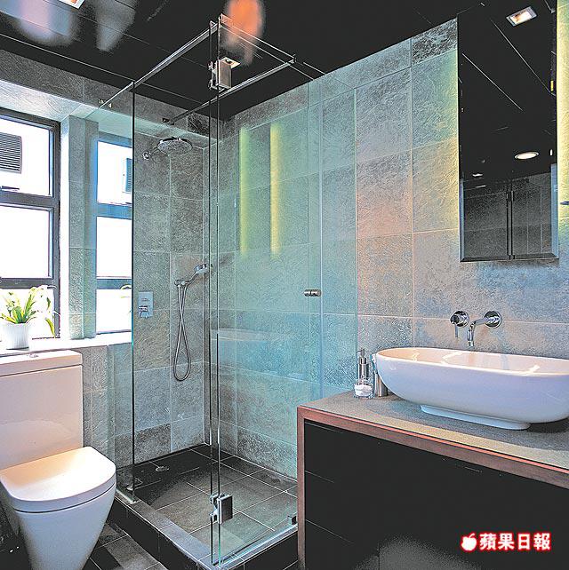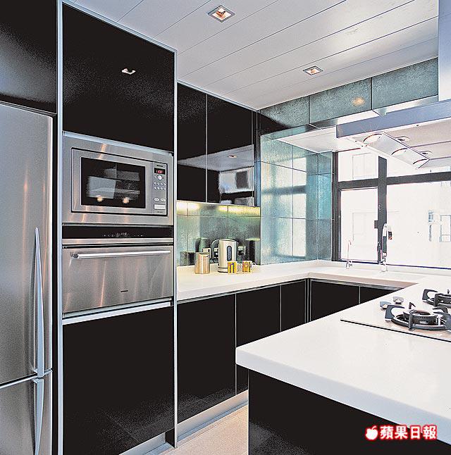 客廳與書房以玻璃牆壁作分隔,為客廳營造更寬敞的視覺效果。浴室以杏色為主,充滿着優美的園林風采。廚房則以光黑色作主調,加上磨砂銀及玻璃作配襯,佈置清簡實用。