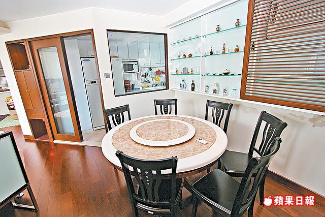 兩個原則細單位本來較為迫窄的大廳,經打通後空間感大幅提高,配合特長窗台,雖然外望樓景為主,仍覺光猛開揚。飯廳及偏廳分處客廳兩端,走廊通道尚算充裕。