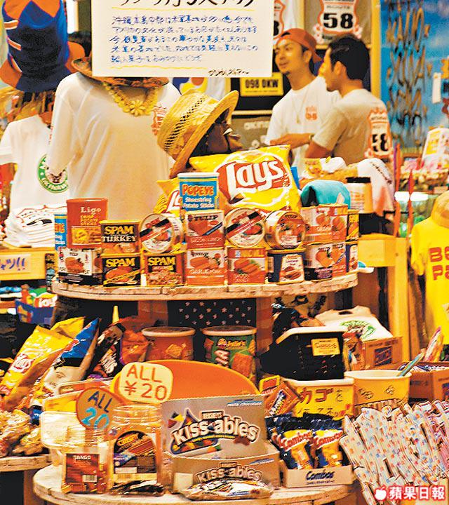 軍事服飾變潮服,似乎理所當然,但最人氣的美國小吃,竟然是午餐肉,就真係估佢唔到,店內擺放着最受歡迎的午餐肉牌子如三花、Spam、Dak等。原來二次大戰時,糧食短缺,美軍帶來的罐頭午餐肉頓成人間珍品,這個情意結一直纏繞至今,最近,當地政府也不再讓美國專美,快將推出自家品牌午餐肉「WashitaPork」,考慮售二百多日圓。不過,我就始終認為我們的長城牌白豬仔午餐肉至正!