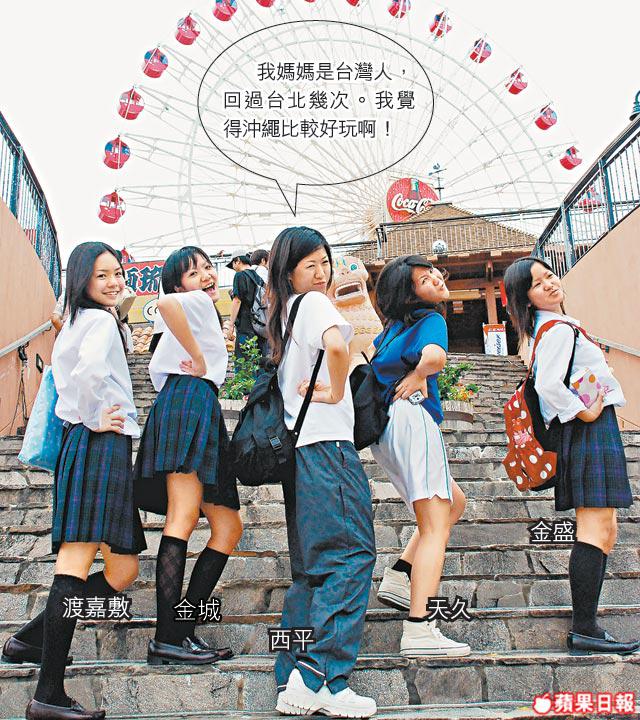 爸爸是沖繩人、媽媽來自台灣的西平,是著名球陽中學的高中二年級生,即使自小在沖繩生活,但國語依然說得標準,不像那些往外國住上一兩年的,回來就不願說中文的banana。可是,只要一影相,日本妹本色便原形畢露。「1,2,3,Cheers!」一個二個叉腰甩膊拉裙電眼……出盡法寶,影到你唔影為止!「我哋放學最喜歡來這裏看電影打保齡,玩機動遊戲,行街買衫食飯……而我就最鍾意AmericanDepot,那裏的衣服很可愛。」店內還有不少二手牛仔衫褲,聽說是美軍寄賣的。