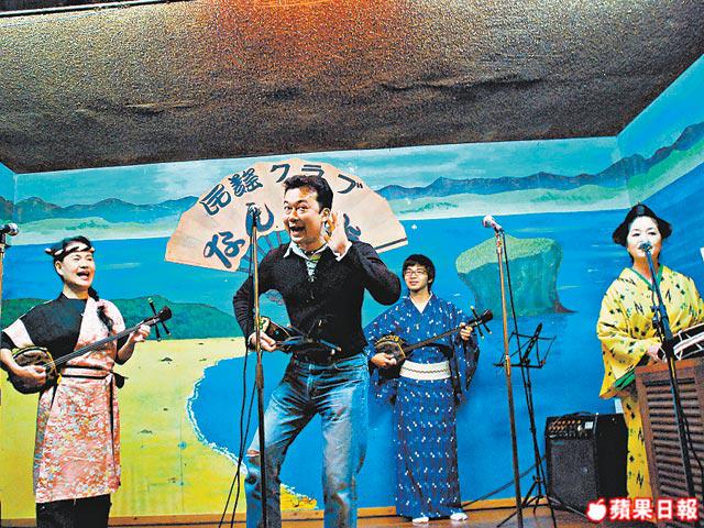 踏進民謠Club簡直兩個世界,一嘈一靜,一暗一光,惟獨四位表演者,除了一位二十來歲的年輕人,其餘都一把年紀。他們邊彈三味線邊唱《花》、《梯梧花》的時候,台下觀眾亦熟練地拿起三板來打拍子,我試過了,結果拍子亂晒龍!