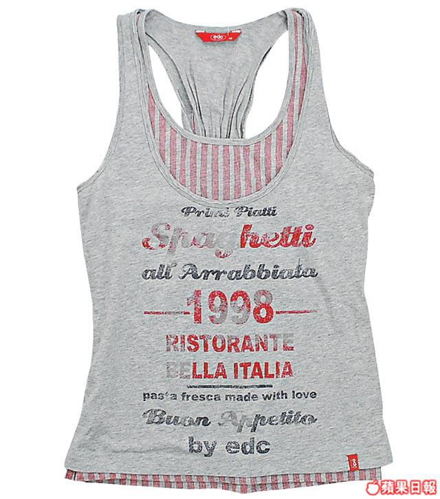 ■edc超貼身的棉質灰背心,襯上藍色紥染效果,Rock味重!$269(c)