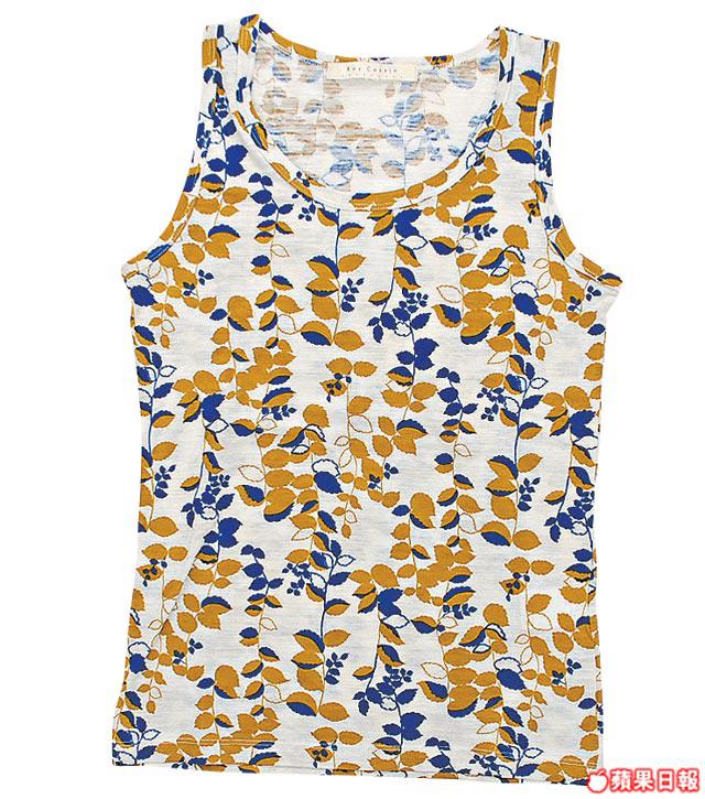 ■RayCassin米白×深藍葉形圖案背心$299(e)