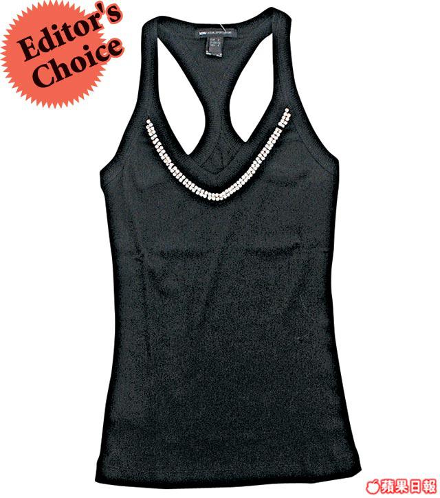 ■單色設計最百搭,這款MNG背心領口加上閃石別具特色。$189(h)