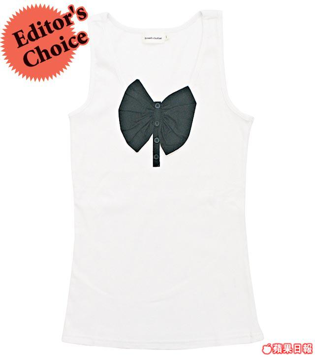 ■breadnbutter本來平凡的白背心,加上黑色Tuxdeo蝴蝶結後變得高貴。$299(a)