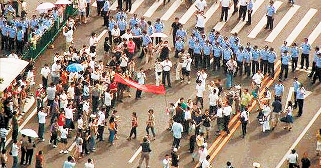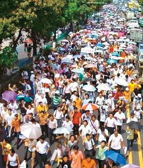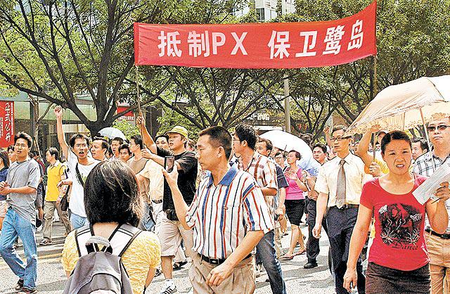 廈門市民反對當局批准台商在鄰近市區興建大型PX化工廠,三萬市民上街示威,並與警方發生推撞