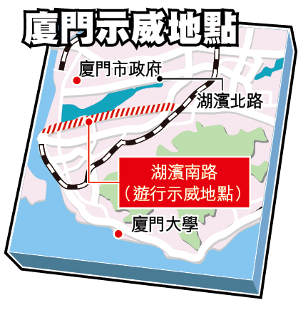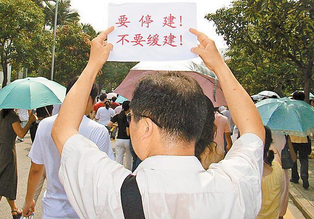 一名關注事件的廈門市民向本報稱,昨日上午,市政府早已有大批公安、武警在場戒備,守衞極度森嚴,但仍有大批抗議人士遊行至市政府前聚集,人數可能多達數千、甚至一、兩萬人,當中部份是圍觀群眾。遊行人士提出怎樣的訴求呢?「就是要停建化工廠,不是緩建!」該市民說。