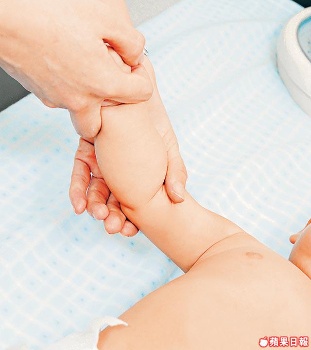 提起BB手掌,替每隻手指按摩,腳趾亦是同樣做法。
