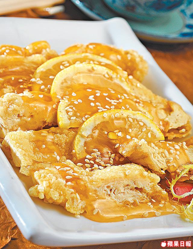 做法:雞翼起骨,以雞粉/鹽/糖略醃,蘸上蛋液,撲上薄生粉,放猛火油鑊炸至黃金,撈起瀝油;西檸汁煮熱,淋上雞翼,最後撒上白芝麻即可。