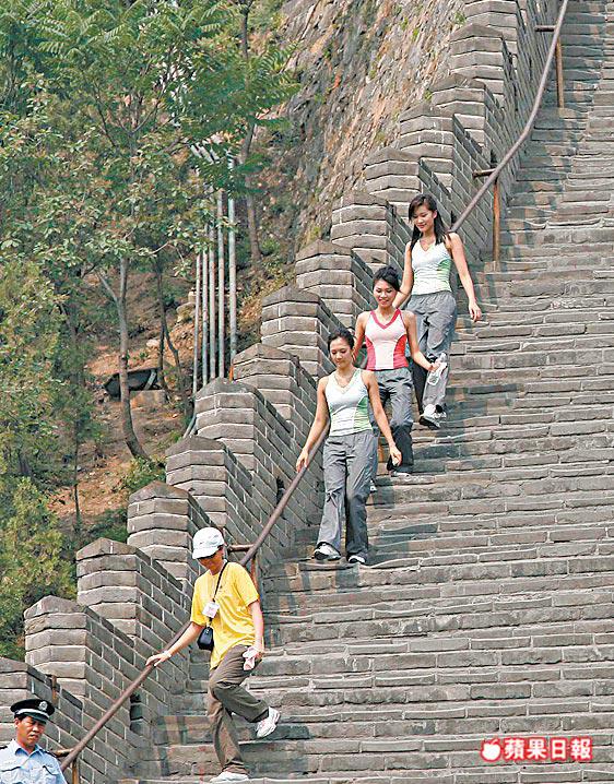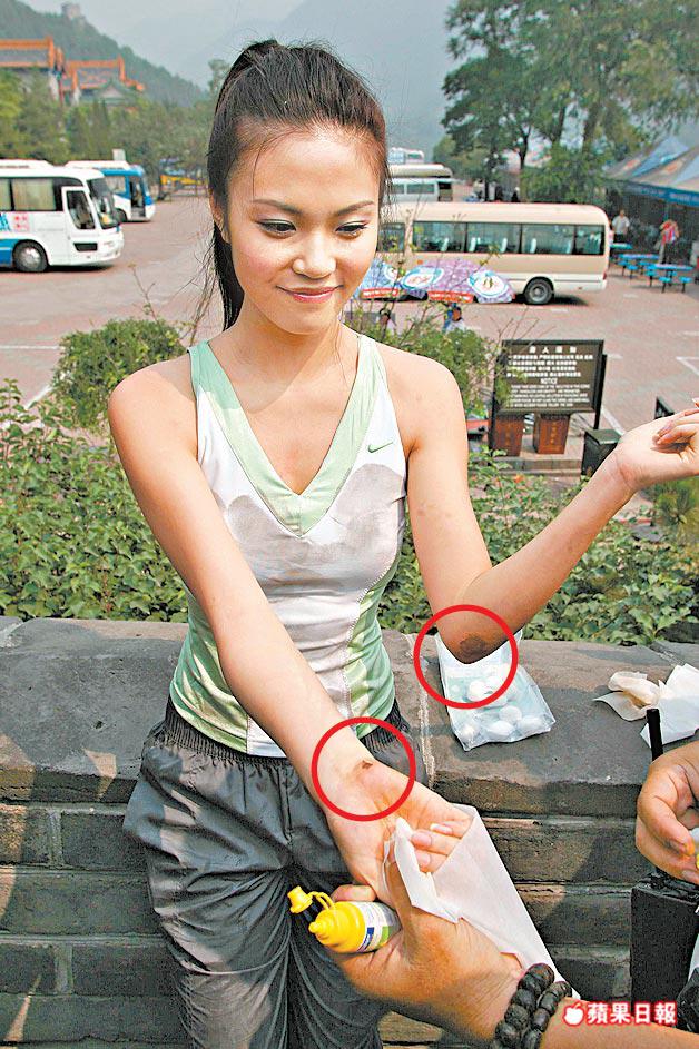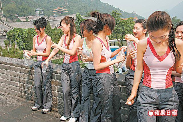 有云不登長城非好漢,港姐候選佳麗1號麥皓兒昨日初嘗做好漢滋味,便像生魚般撻落地血濺長城,手腳均告受傷,被救傷車送院治理;目睹同伴受傷,其餘15位冷血佳麗不但沒有上前慰問,還將手上水樽當香檳般搖晃互噴,至港姐統籌副經理陳紫蓮斥責才停手,令港姐形象蒙污。北京直擊