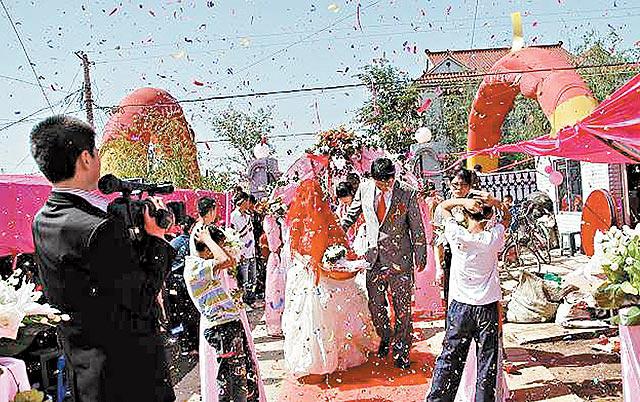 掛有祝福字句的大拱門、長長的紅地毯、大型的觀眾席、燦爛的煙花、樂隊伴奏、歌舞助興……內地農村總給人落後、貧窮的印象,但看過這個在遼寧營口市農村舉行的奢華婚禮場面,你也許會改觀。有「現實」的網友更說:「農村人真有錢,以後要嫁農村人了!」