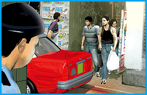 稍後該三名男子聯同另一名男子離開,其中兩名男子同乘的士往柯士甸路方向離去,另外兩名男子各攜帶一個白色垃圾膠袋及一個黑色紙袋,登上另一部的士右轉出漆咸圍。