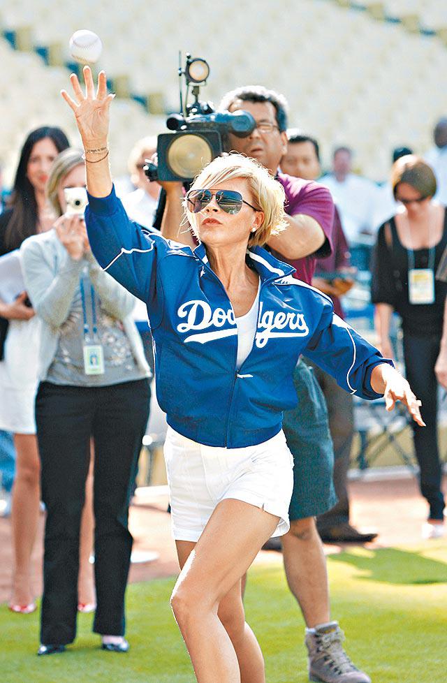 Victoria昨日穿上道奇隊的外套,為該隊舉行開球禮,Victoria不失口甜舌滑本色說:「碧咸喜歡看棒球,他恨不得快點到場看道奇隊的賽事。」被問到他們的新居何時入伙,她說:「應該是下月中。」此外,有報道指Victoria原來是珍妮花雅麗絲頓(JenniferAniston)新男友PaulSculfor的好友,兩人更經常相約夜蒲。