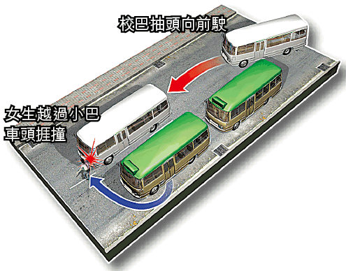 在此之前,一輛由50歲姓趙女司機駕駛、載着幾名學生的28座位小學校巴,沿顯泰街駛至小巴站前。