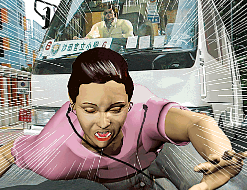 過程:24歲女子在尖沙嘴麼地道過馬路時以MP3機聽音樂,被的士撞至命危