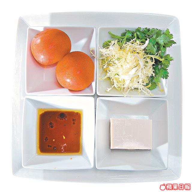 貼士:為了令番茄易剝皮,不要烚太久,烚好後要立刻急凍;吃時才在雪櫃取出豆腐,可令沙律口感更好。
