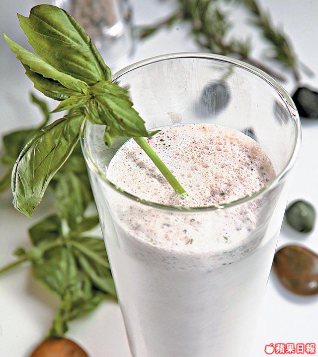材料:任何雪糕2雪糕匙、奶1/2杯、羅勒葉3塊