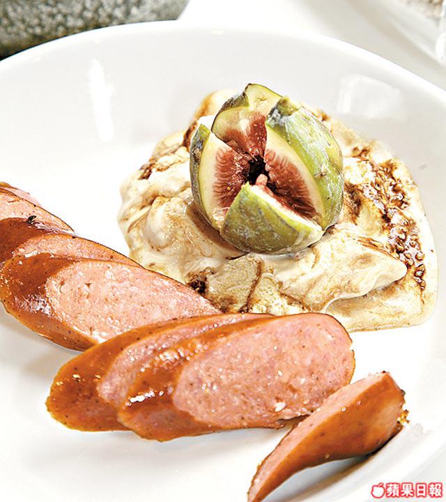 材料:波蘭香腸1條、新鮮無花果1個(切四邊)、法式焦糖布甸雪糕1雪糕匙、黑胡椒粒/油各少許