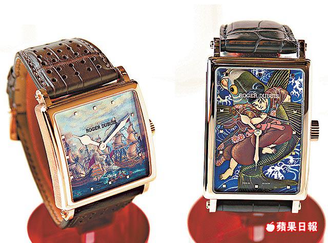 設計大膽、製錶技術精湛的RogerDubuis,每年都會推出充滿藝術美的搪瓷腕錶,今年只推出了兩枚新作,各自限量生產28枚。長方形的MuchMore以日本浮世繪為主題的細膩之作,滲着異國風情,另一枚正方面GoldenSquare則名為NavalBattle,以海上戰事為背景,方寸腕上重現不凡氣派。