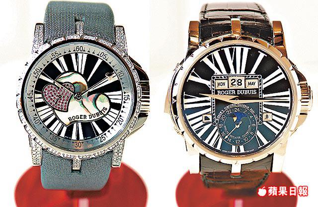 瑞士著名腕錶品牌RogerDubuis由掌舵人CarlosDias於1995年創立發展,短短12年已開發了20多枚機芯,由最初破格大膽外形的十字形腕錶,已發展到今天講究內外兼優的頂尖要求。今年發佈的一系列新錶,剛由日本、新加坡巡迴抵港展出,包括具王者氣派的JustforKing、閃耀千鑽光芒的Gioia等,當中一枚價值400多萬、為慶祝巴黎新店開幕的Excalibur9,PlaceVendome,集陀飛輪、三問報時、萬年曆等多項功能於一身,而女裝ExcaliburEX39系列錶面以兩個心形作主題,浪漫醉人。