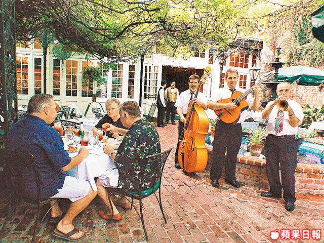 昨晚的爵士樂甜夢還回味着,早上起來食Brunch都要在爵士音樂聲中享用。CourtofTwoSisters的JazzBrunch自助餐很出名,環境、音樂及食物都是它的賣點。維多利亞式建築,西班牙式的中庭,坐在噴泉旁享用豐富的Brunch,真是件賞心樂事。每朝早9時至下午3時都有樂隊在露天茶座表演,奏的當然是Jazz。必吃新奧爾良的特色食品:Jumbalaya什錦燉飯、玉米糕、Gumbo湯、嘉年華蛋糕KingCakes等……計埋冷熱盤、生果甜品都有近50款,十足十晚餐一樣。