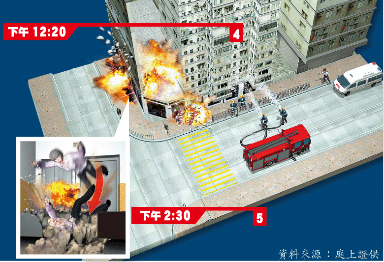 5)偉景樓地下大堂發生爆炸,終導致兩名老婦死亡