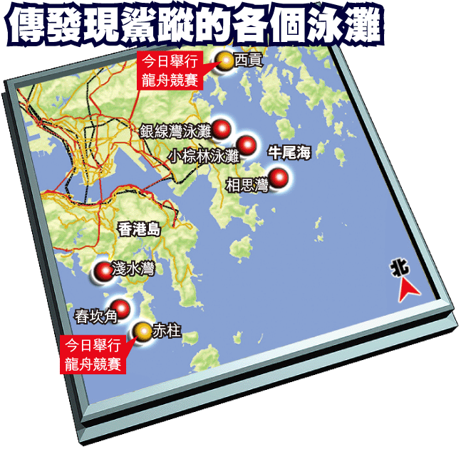 【本報訊】今日端午佳節,又是一家大小暢游龍舟水的好時光。但當大家沐浴於燦爛日光的時候,一片鯊魚驚魂,卻籠罩於本港東部及南部水域。警方連日來先後接報,西貢牛尾海、港島南區淺水灣及赤柱舂坎角,發現鯊魚蹤影。有關部門已加強檢查防鯊網,龍舟賽則如常舉行,但賽會將呼籲健兒切勿下水。 記者:蔡建豪、蔡元貴