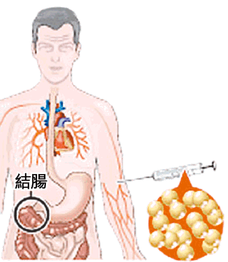 1)用針管將黃金納米球,注射入病人血管內