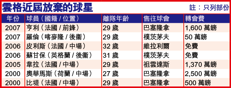 雲格放人放得多,下次離開阿仙奴的人,可能是他自己。自甸恩辭去阿仙奴副會長之職後,有傳與他交情甚深的雲格亦有機會步其後塵。盛傳皇馬欲以雲格代替大有機會離隊的卡比路領軍,如屬實的話將會很有趣,因屆時他將與愛徒亨利打對台。文:青蛙仔