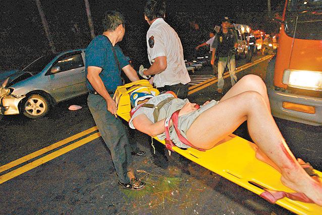 一場慶祝活動,竟換來死神的召喚!台北市著名旅遊勝地陽明山,昨日傍晚發生嚴重車禍。一輛旅遊巴下山時,疑擦撞前方車輛後,失控衝落50米山谷,乘客連同司機全被壓在車內動彈不得,救援人員趕到現場,只見旅遊巴扭成一大團廢鐵,部份乘客被拋到車外,東倒西歪地躺在草叢裏,救援人員心有餘悸地說:「那種景象只能用哀鴻遍野來形容。」這場車禍造成至少8死24傷,另有4人失蹤。