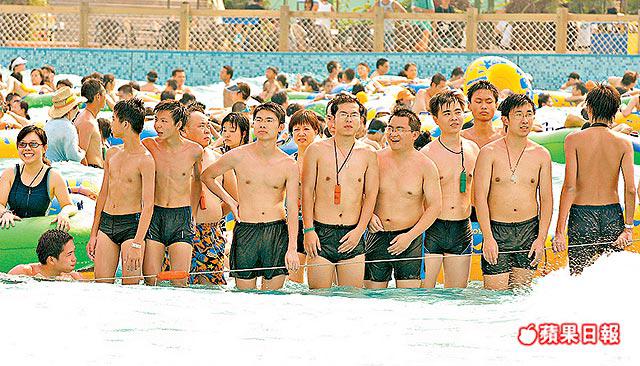 應屆港姐的連環泳裝攻勢,實在令人目不暇給。16位佳麗昨日穿上性感三點式泳衣,在番禺長隆水上樂園拍攝戲水逐浪宣傳片,下盤穩重的「巨躉黎姿」2號何傲兒示範龍躉插水,全場最瘦的「翻版陳法拉」6號王卉霖則盆骨突現,「熟女婷婷」9號王君馨更隨浪拋胸博搶鏡,如此精采的港姐濕身場面,昨日當地市民花140元人民幣(約144港元)買飛入場,就可任睇四粒鐘,難怪吸引逾200泳客死守池邊賞春色。 番禺直擊